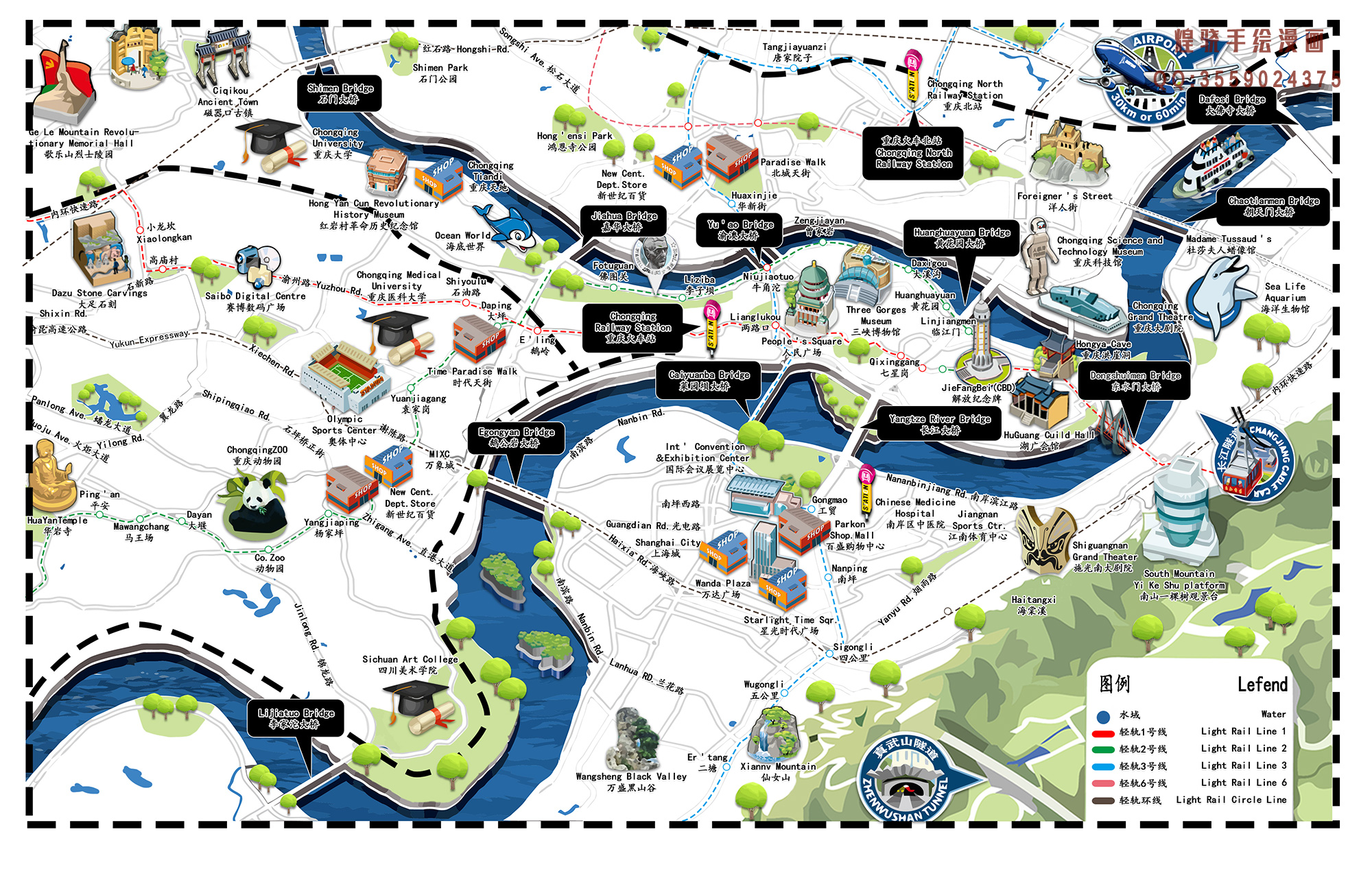 3、城市建设:重庆城市建设日新月异,交通、通信、水利、环保等基础设施不断完善,注重生态环境保护,打造山清水秀美丽家园。
